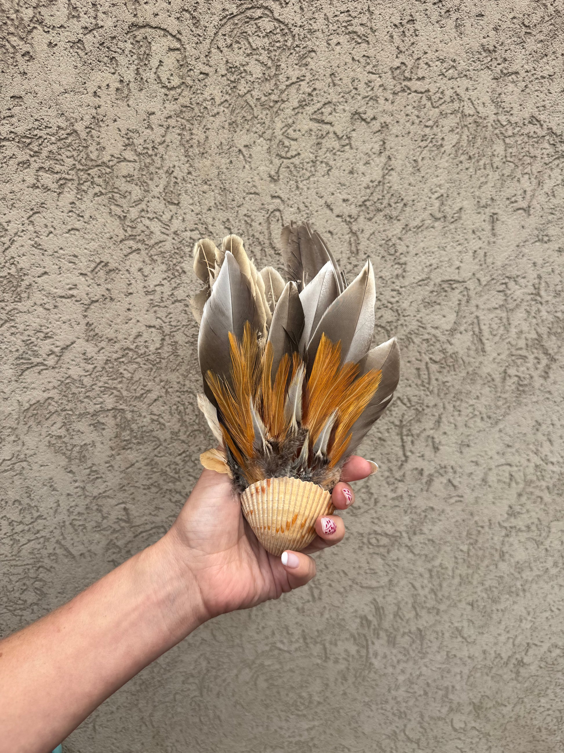 This smudging fan is an essential tool for any spiritual or wellness practice. The fan is adorned with delicate feathers, fur, crystals, and shells adding a touch of beauty to its powerful cleansing abilities. This is perfect to use with a sage bundle for clearing negative energies and promoting clarity and peace.